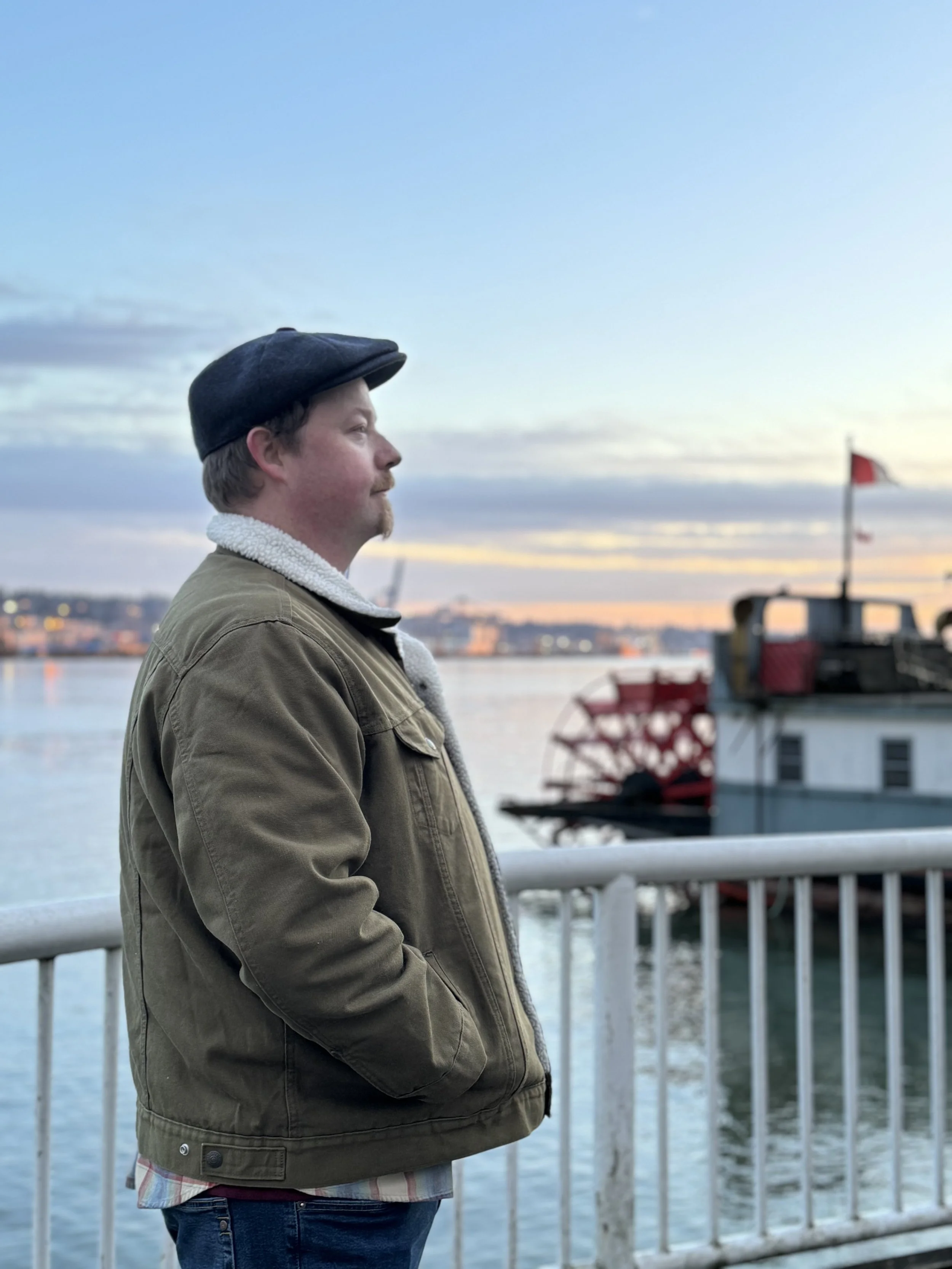 Over the years, his musical world expanded: guitar, upright and electric bass, banjo, and an unreasonable amount of ukulele. By 2012, he had packed his life into a metaphorical suitcase (and a few actual ones) and hit the road, touring nearly coast to coast across Canada and New Zealand as a bassist. He played in clubs, coffee shops, and living rooms, building a career on long drives, late nights, and the strange magic of road life. His mum, who had always hoped he’d pursue music, was over the moon.
